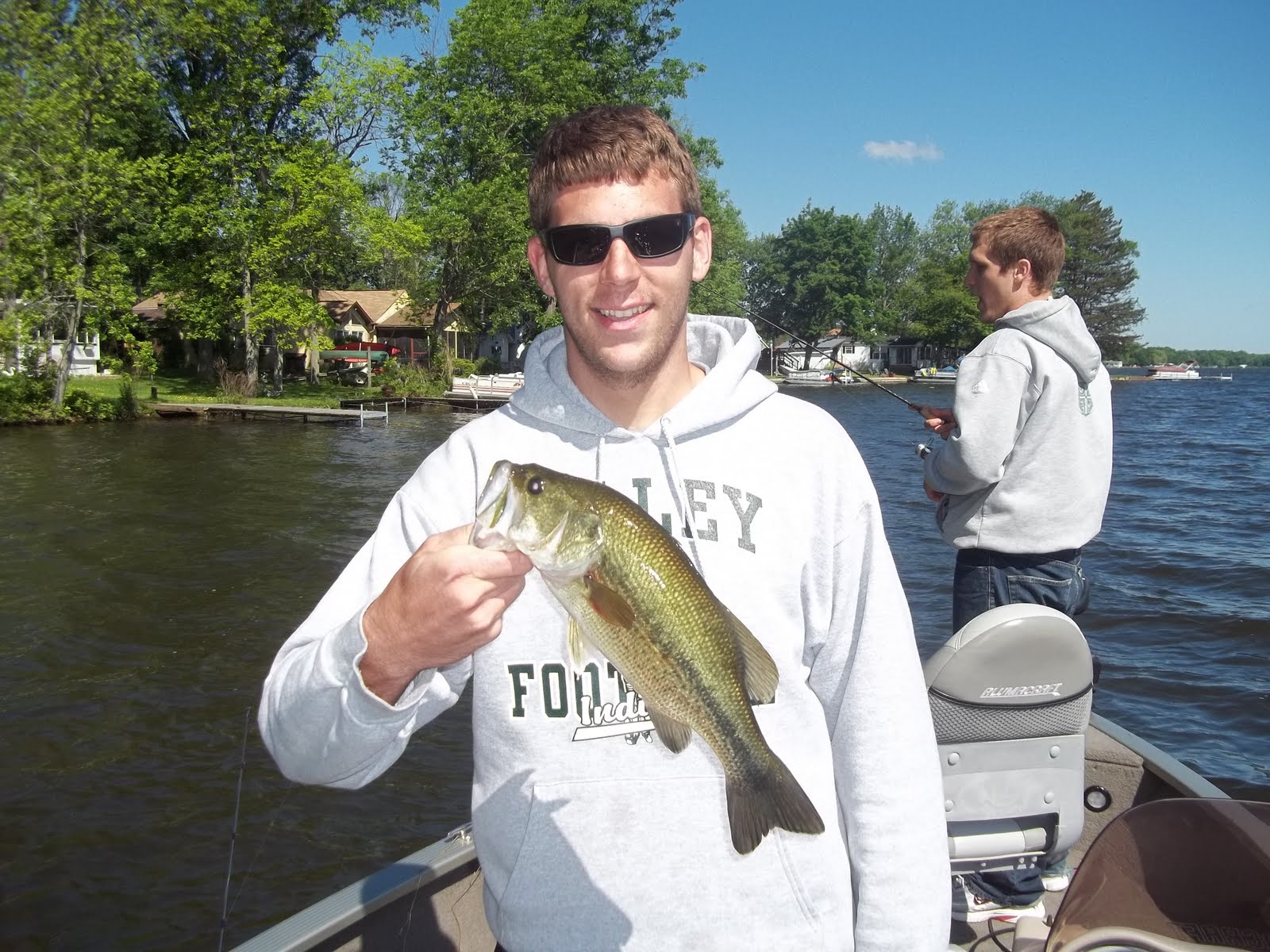 We hit the water with my nephew, star lacrosse player Keith, and his friend Mike. Keith took a break from college lacrosse and work to enjoy a day of bass fishing in the Finger Lakes. We hit Lamoka lake for the day, and got our first fish within minutes. Casting spinner baits in the shallows, the fish were on all day, and the big ones were not shy! The lure of the day was a Texas Rig Yum Dinger 6″ in watermelon. The wind was strong all day, proving difficult for boat control. Despite the wind, we had a perfect day on the water.