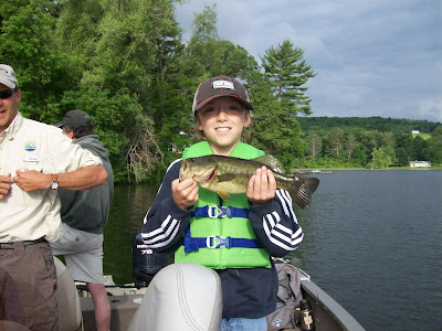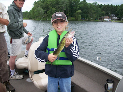 Went fishing on Tuesday with Mike O’Connell, his dad, and his ten year old son Brady. We were greeted with sunny skies and brisk winds. We started casting the weed beds on the south shore with Power worms and spinner baits. They produced largemouth bass and pickerel. The trip was a gift to Brady for his birthday, Happy Birthday! Hey, maybe next time we can chase some musky on Waneta Lake!