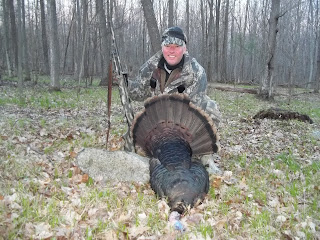 This year my first guided trip of the year was with my best friend of 39 years, Andy Boudinot. A lifelong hunter and fisherman, he had never tried to hunt these elusive toms. The morning was a perfect 40 degrees, a light breeze and slightly overcast. We were set up on a known roost area, but the birds were dead silent. We did happen to see a couple fly down, but it was still silent. I let out a few soft purrs and two gobblers went off, it was game on! We had gobblers and hens talking up a storm. I went back and forth with loud yelps and soft purrs, and it wasn’t long before Andy had to make a choice…which one. It only took one shot, and the 3′ 1/2″ magnum, turkey load did it’s job at 42 yards. Great shot Andy! I think he will be back in the turkey woods again soon! It’s always exciting calling in birds for others, a great day in the Finger Lakes woods.