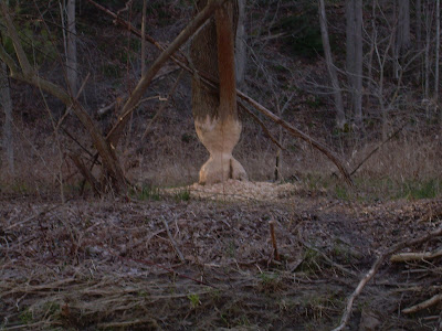 Blog Out on the Stream April 13, 2009 Went out on Keuka Outlet to check out the action this morning. On the way I noticed some cool beaver action and thought I’d share. This tree is ready to fall over completely What's your reaction?0Cool0Bad0Lol0Sad Share: