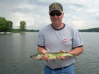 Went out with Charlie Young and his friend Tony this week. In a week filled with thunderstorms, we got lucky and fished a clear moning. We started the day trolling for Musky. We had a large Musky slam a 6″ storm kicking minnow, but we could not land the powerful fish.